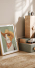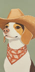 Hravé a okouzlující umělecké dílo psa bígla, oblečeného jako kovboj, se širokým kloboukem a vzorovaným šátkem. Tento vtipný zvířecí portrét kombinuje rustikální westernový styl s lehkým humorem – ideální pro milovníky psů a náladové sbírky nástěnných umění.