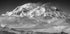 Ze vzdáleného hřebene se Denali odvíjí v dramatické černé a bílé: ostré, zasněžené vrcholky se tyčí nad vzdouvajícími se mraky, zatímco mráz a stíny rýsují syrovou geometrii krajiny. Tichá, majestátní pocta divoké vznešenosti Aljašky, zachycená fotografem divoké zvěře Jeffrey C. Sinkem. Ideální pro ty, kteří milují epické horské krajiny a minimalistickou estetiku.