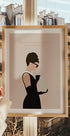 Minimalistická a stylová ilustrace ženy v klasických černých šatech inspirovaná nadčasovou módou a elegancí. Citát „Elegance je jediná krása, která nikdy nezmizí“ dodává sofistikovanost, díky čemuž je toto umělecké dílo ideální pro milovníky módy, elegantních domácností a moderních nástěnných dekorací.