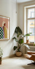 Toto abstraktní umělecké dílo zobrazuje stylizovaný portrét ženy v odvážné geometrické halence se zářivými barvami. Práce vyzdvihuje moderní design, minimalismus a umělecký výraz s výraznými formami na tlumeném pozadí – ideální pro milovníky současného umění.