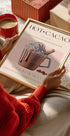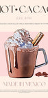Na retro inspirované ilustraci od Nazmy Khokhar je středem pozornosti kouřící šálek krémového horkého kakaa. Teplé hnědé tóny, krémové odlesky a jemné růžové odstíny vytvářejí útulnou atmosféru vintage kavárny. Elegantní typografie a jemný odkaz 50. let 20. století naznačují klasickou estetiku kavárenského plakátu s nádechem mexické kakaové tradice.