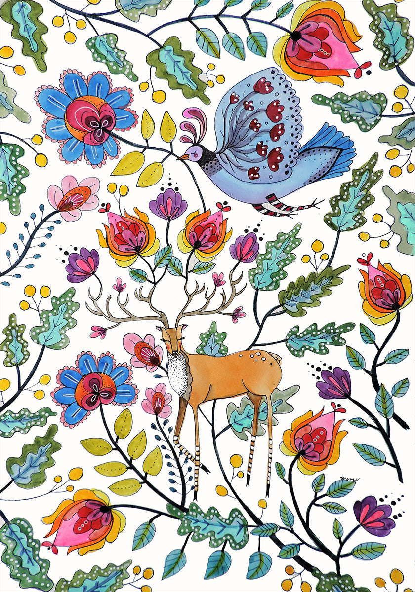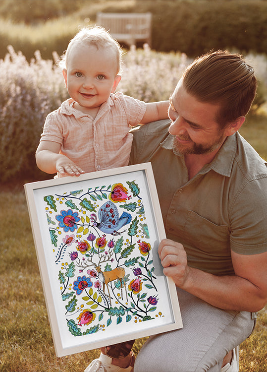 Plakát Il Etait Une Fois (francouzsky „Once upon a time“) je nápadité a okouzlující umělecké dílo, které diváka přenese do kouzelného pohádkového světa. Mezi zářivými květinami stojí půvabný jelen s kvetoucími parohy, zatímco scénou klouže krásně vzorovaný modrý pták. Toto dílo bohaté na detaily a plné zářivých barev – růžové, žluté, modré a zelené – vyzařuje radost a úžas. Skvěle se hodí do dětských pokojů, kreativních studií nebo do jakéhokoli prostoru, který oslavuje představivost a přírodu, zaujme představivost svým hravým kouzlem inspirovaným pohádkami.