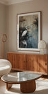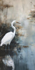 Toto klidné umělecké dílo zobrazuje bílou volavku u zrcadlového potoka obklopeného bujnou mlhou zahalenou vegetací. Poklidná scéna navozuje pocit klidu a přírodní krásy a zdůrazňuje eleganci divoké zvěře v jejím přirozeném prostředí.
