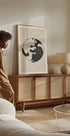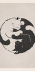 Minimalistický černobílý umělecký plakát zobrazující dvě kočky ležící spolu ve formaci jin-jang, symbolizující rovnováhu, mír a harmonii. Moderní kousek ideální pro milovníky koček a ty, kteří ocení klidný, moderní design.