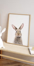 Krásný portrét králičího mláděte zachycený na čistě bílém pozadí. Jemný kožíšek, vztyčené uši a nevinný vzhled dělají z tohoto kousku perfektní doplněk do dětských pokojíčků, školek nebo pro každého, kdo miluje roztomilé portréty zvířátek.