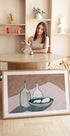 Ponořte se do klidného, moderního zátiší: Bottles od Dan Hobday kombinuje jemné béžové a růžové odstíny se sebevědomými tahy štětcem, které naznačují kolekci lahví v grafických, minimalistických tvarech. Malebná textura a vzdušná kompozice dodávají místnosti stylový, teplý a moderní klid. Ideální pro skandinávské dekorace.