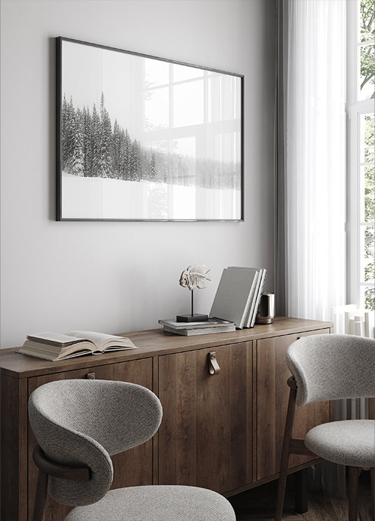 Forest for the Trees od Kirka Cypela zachycuje klidný zimní den v lese: štíhlé tmavé kmeny se tyčí mlhou a mrazem, zatímco sníh tlumí zvuky a nechává chlad odlesky v namodralém světle. Klidná, poetická krajina s hloubkou a rytmem, kde oko bloudí mezi grafickými liniemi stromů. Severská zimní pohoda, která vybízí k rozjímání.