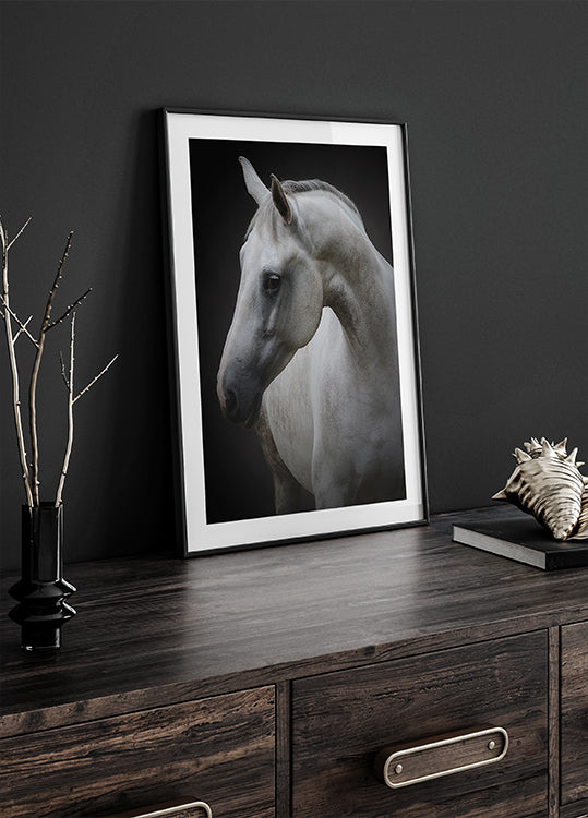 Maggie od Avishai Avivi zachycuje klisnu v klidném profilu: elegantní klenba krku, měkká, vlající hříva a tlumené, neutrální pozadí. Jemný minimalismus a jemné světlo podtrhují ladnost a sílu zvířete, takže motiv vyzařuje přítomnost, teplo a nadčasový, skandinávský klid. Poetický portrét pro moderní, tiché prostory.