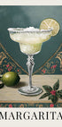 Toto elegantní umělecké dílo zobrazuje klasický koktejl margarita v dekorativní sklenici, zdobené klínkem limetky. Na pozadí zdobeného pozadí kombinuje vintage kouzlo s rafinovanou přípravou tohoto nadčasového nápoje. Ideální pro barové dekorace a koktejlové interiéry.