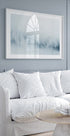 Misty Pines od Lynann Colligan zachycuje klidné zimní ráno, kde tmavé siluety jedlí mizí v namodralé mlze. Vrstvy oparu a tlumeného světla vytvářejí hloubku a meditativní atmosféru, která přitahuje zrak mezi stromy. Tichá severská poezie na zeď. Ideální pro místnosti, které hledají klid a hloubku.