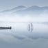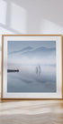 Modré ticho od Jose Beuta zachycuje klidnou chvíli u zamlženého horského jezera. Silueta osamělého rybáře klidně stojí proti světle modré záři, zatímco odraz na křišťálově čisté vodě ticho zdvojnásobuje. Jemné pastelové odstíny a minimalistické linie vytvářejí severskou, meditativní atmosféru a pocit klidu.