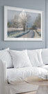 Tato poklidná zimní krajina zachycuje mrazivé ráno podél tiché venkovské silnice se zasněženým stromem zářícím jemným pastelovým světlem. Tlumené tóny a klidná atmosféra evokují nehybnost, svěžest a tichou krásu rána a vytvářejí uklidňující umělecké dílo pro sezónní a přírodou inspirované stěny.