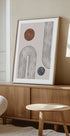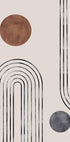 Elegantní abstraktní plakát s výraznými geometrickými tvary, kruhy a zakřivenými černými linkami na béžovém pozadí. Toto minimalistické umělecké dílo, inspirované moderním designem poloviny století, kombinuje rovnováhu, rytmus a eleganci, což z něj činí všestranný kousek pro moderní interiéry.
