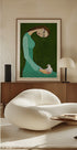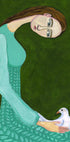 Plakát paní sedící s bílou holubicí ptačí ženou