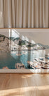 Úchvatná fotografie pobřeží Amalfi, kde se nad útesy tyčí pastelově zbarvené domy a v tyrkysových vodách poklidně plují lodě. Scéna zachycuje podstatu italského léta – harmonickou směs pobřežního kouzla, architektury a klidu Středozemního moře.