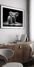 Dramatický černobílý plakát slona prorážejícího vody řeky Kafue v Zambii. Nízké osvětlení zvýrazňuje vrásky, svaly a cákance vody, zatímco majestátní klid kontrastuje se silou. Fotografoval Gorazd Golob – silný, nadčasový motiv do moderních prostor. Perfektní jako poutač v obývacím pokoji, kanceláři nebo galerii.