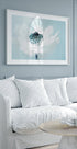 Jemná makrofotografie bílého květu s tyrkysově laděnými detaily vytvářející snovou a éterickou náladu. Jemné zaměření a pastelové barvy evokují klid a eleganci, díky čemuž je dílo ideální pro interiéry hledající harmonii a rafinovanou krásu.