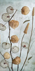 Lanterns od Mandy Disher inscenuje jemné physalis lucerny v poetickém zátiší. Průhledná pouzdra září v teplých podzimních odstínech, zatímco jemné stonky kreslí světlé linky na klidném světlém pozadí. Minimalistický botanický motiv s tichým pohybem a severskou elegancí. Ideální pro stěny galerie a klidnou, moderní výzdobu.