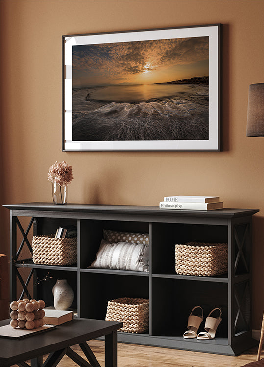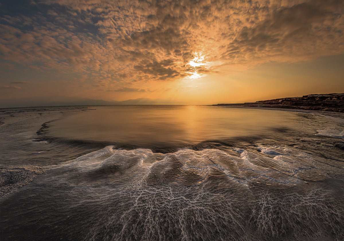 Struktura soli od Isama Telhamiho umožňuje tichému rytmu moře zaplnit prostor: jemné vlny omývají jemnou, světlou písečnou pláž, kde sůl kreslí jemné vzory podél okraje vody. Nad obzorem se táhnou těžké mraky v tlumených modrých a pískových barvách. Klidný, minimalistický motiv, který vybízí k zamyšlení.