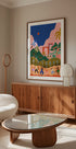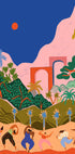 Barevné a živé umělecké dílo, které zachycuje energický tanec pod tropickým sluncem. Toto dílo, obklopené palmami, pestrobarevnou krajinou a odvážnými tvary, oslavuje pohyb, svobodu a krásu ráje. Dokonalé umělecké dílo pro domácnost, studio nebo kreativní prostor plný energie.