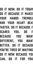 Nápadný černobílý typografický plakát s motivačním poselstvím "Udělej to hned. Udělej to dnes. Udělej to, protože se ti při tom třesou ruce a srdce ti bije rychleji..." Toto silné dílo inspiruje odvahu, odhodlání a akci, ideální pro pracovní prostory, studia nebo kdekoli, kde je potřeba motivace.