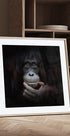 Intenzivní detailní záběr usmívajícího se zamyšleného orangutana zachycený v nízkém náladovém osvětlení, které zvýrazňuje texturu srsti a hluboké lidské oči. Objekt pořízený německou fotografkou Antje Wenner-Braun v zoo Rostock vybízí k tichému zamyšlení a hřejivému, empatickému klidu v místnosti. Ideální do obývacího pokoje, kanceláře nebo kreativního prostoru.