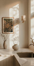 Delikátní detailní záběr béžových divokých květin kymácejících se ve světle, zachycený v měkkém makro stylu se snovým bokehem na pozadí. Toto botanické umělecké dílo vyzařuje teplo a klid a je ideální pro přírodou inspirované a minimalistické interiéry.