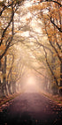 Snová podzimní alej lemovaná vysokými duby, kde zlaté listy prosvítají měkkou mlhou. Mlžná atmosféra vytváří pocit klidu a tajemna a vede oko po nekonečné cestě. Fantastický sezónní potisk, který zachycuje podzimní krajinu.