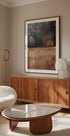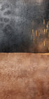 Moderní abstraktní umělecké dílo se zemitými tóny v hnědé, oranžové a šedé v kombinaci s rustikálním texturovaným povrchem. Zlaté svislé tahy dodávají hloubku a kontrast a vytvářejí nadčasový výraz. Perfektní pro minimalistické, rustikální nebo moderní interiéry, které chtějí teplo a sofistikovanost.
