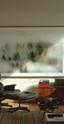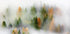 Zasněný letecký pohled na zamlžený podzimní les, kde barevné koruny stromů v zelené, oranžové a zlaté prorážejí vrstvy mlhy. Jemný opar vytváří magickou, téměř surrealistickou atmosféru, která zachycuje tichou, měnící se krásu přírody. Ideální pro přidání uklidňující a poetické atmosféry do každé místnosti.