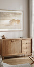 Poetická podzimní krajina zahalená v mlze, kde zlaté a pomerančové stromy jemně září proti mlhavému rannímu světlu. Snová atmosféra zachycuje tichou krásu přírody v přechodu do podzimu, díky čemuž je toto uklidňující a evokující umělecké dílo do každého interiéru.