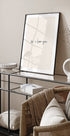 Černobílý typografický plakát s ručně psaným „P.S. Miluji tě v elegantní kaligrafii. Jednoduché, romantické prohlášení, které vytvoří teplo v obývacím pokoji, ložnici nebo jako dárek pro někoho, na kom vám záleží. Minimalistický výraz s velkým efektem – nadčasový poutač lásky a přítomnosti. Skvěle se hodí do vstupní haly, obývacího pokoje nebo jako součást obrazové stěny.