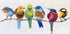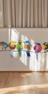 Hravé a malebné umělecké dílo šesti barevných ptáků sedících spolu na větvi. Každý pták je jedinečně namalován výraznými tahy modré, zelené, žluté, červené a hnědé, což vytváří živou a expresivní kompozici. Perfektní pro přidání kouzla a kreativity každé stěně.