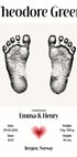 Nadčasový personalizovaný plakát miminka s jemnými novorozeneckými stopami a vlastními detaily narození – jméno, datum, čas, váha a výška. Toto minimalistické a emocionální nástěnné umění je perfektní památkou pro nové rodiče nebo promyšleným dárkem pro miminko nebo výzdobu dětského pokoje.