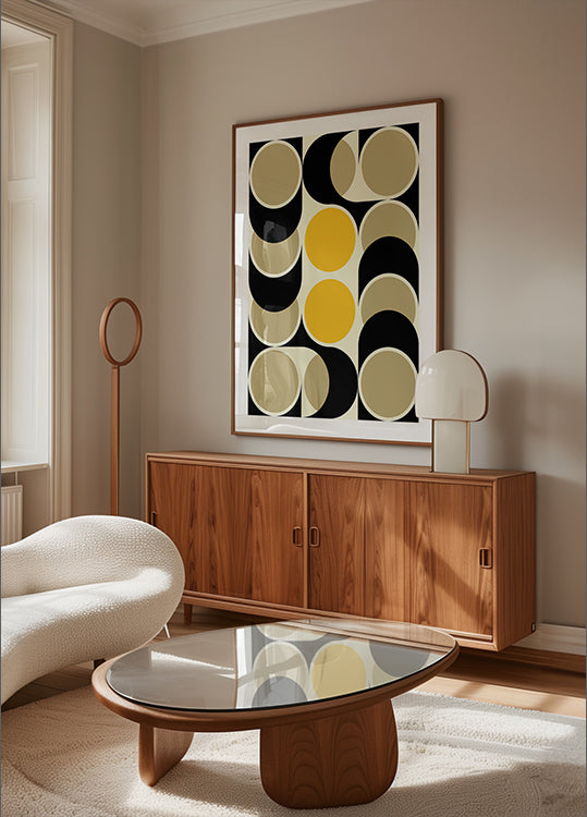 Retro Circles Dance od Petra Strnada - Papír prémiové kvality s hladkým matným povrchem a elegantním dojmem. Matný povrch snižuje odlesky a dodává rafinovaný, nadčasový vzhled. Pevný a odolný pro dlouhodobé používání, ideální pro profesionální prostředí i dekorativní displeje.