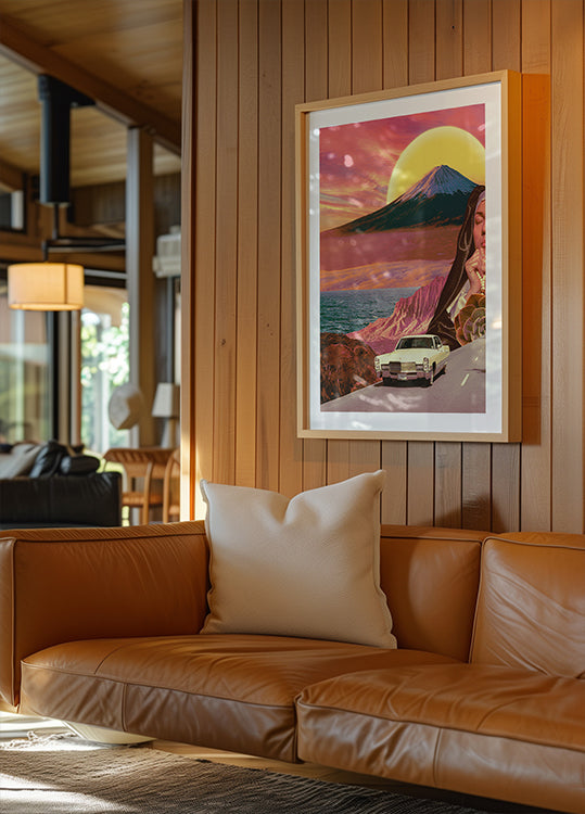 Retro Landscape Collage od CosmoZach - Papír prémiové kvality s hladkým matným povrchem a elegantním dojmem. Matný povrch snižuje odlesky a dodává rafinovaný, nadčasový vzhled. Pevný a odolný pro dlouhodobé používání, ideální pro profesionální prostředí i dekorativní displeje.