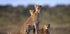 Silná fotografie divoké zvěře zachycující gepardí matku se svými mláďaty, jak odpočívají na hřebeni, když pátrají po savaně. Snímek zachycuje eleganci, ochranu a něhu nejrychlejšího predátora Afriky a je poctou přírodě, rodinným vazbám a divokému duchu zvířat.