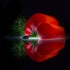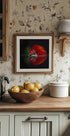 Šťavnatá červená paprika leží čerstvě nakrájená na lesklém, reflexním povrchu, kde světlo a stín vytvářejí klidnou, moderní kompozici. Čerstvé kousky semínek a ostré hrany dodávají energii, zatímco čisté pozadí vytváří rovnováhu. Stylový kuchyňský motiv od Wieteke de Kogel, ideální do gastronomických prostor. A každodenní poezie.