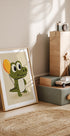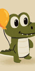 Veselá a hravá ilustrace roztomilého krokodýla držícího oranžový balónek. Díky svým velkým, přátelským očím a měkkým texturám přináší toto umělecké dílo pocit zábavy a lehkosti – ideální pro dětské pokoje, herny nebo prostory navržené tak, aby inspirovaly radost a představivost.