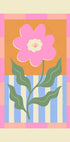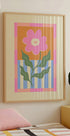 Hravý růžový květinový plakát je okouzlující a veselá květinová ilustrace s retro designem. Zobrazuje velký světle růžový květ s měkkými okvětními lístky a zelenými listy, zasazený na teplém oranžovém pozadí s modrobílými pruhy, orámovaný růžovým kostkovaným okrajem. Kompozice vyzařuje optimismus a hravost, díky čemuž je ideální pro moderní, eklektické nebo vintage interiéry. Ideální pro rozjasnění kuchyní, ložnic nebo kreativních prostorů, dodává nádech barev a radosti každé obrazové stěně.