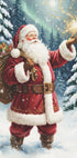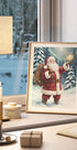 Santa se pohybuje zasněženým lesem, jeho červený kabát září proti tmavým jedlím, zatímco hvězdy a tiché sněžení vytvářejí kouzelný okamžik. Poetická pocta kouzlu zimy od Andrease Magnussona s ikonickým Santa Clausem uprostřed. Dokonalá dávka vánoční nálady. Stvořeno pro pohodové prosincové dny.