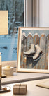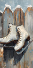 Poetická zimní scéna: pár klasických bruslí nonšalantně visí přes starý plot, ve vzduchu stopy sněhu a chlad. Tlumené, severské odstíny a jemné osvětlení vytvářejí klid, nostalgii a zimní radost. Ideální pro zarámování vzpomínek na kluziště, klidné dny a malá dobrodružství. Motiv vytvořil Ohkimiko. V jednoduchém, nadčasovém výrazu.