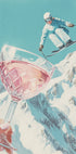 Hravý, surrealistický plakát od Andrease Magnussona: Záblesk alpského glamu, kde růžové šampaňské šumí na zasněžených vrcholcích hor a lyžařská trať se vine třpytivou zimní krajinou. Pastelové tóny a jemné detaily vytvářejí snovou atmosféru, která vyvažuje dobrodružství, humor a eleganci. Perfektní jako poutač v obývacím pokoji nebo kabině.