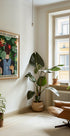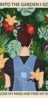 Toto umělecké dílo zobrazuje osobu v džínovině obklopenou bujnou zelení a zářivými květinami, evokující témata přírody, míru a sebeobjevování. Text klade důraz na nalezení klidu a duše v zahradním prostředí. Ideální pro všímavost a zahradničení.