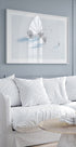 Poetický, minimalistický zimní motiv: Z ptačí perspektivy se v grafických liniích rozvíjí zasněžená krajina, kde roztroušené stromy vrhají dlouhé, namodralé stíny na bílou pláň, zatímco ticho křižuje malé hejno ptactva. Klidná, vysoce kontrastní kompozice od Mei Xu, plná vzduchu a reflexe.
