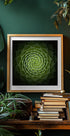 Hypnotický detailní plakát sukulentní rostliny v dokonalém tvaru růžice, vytvořený Victorem Mozquedou. Zelené listy se stáčejí do Fibonacciho spirály s jemnými chloupky a jemnou vinětací, která zdůrazňuje strukturu a hloubku. Botanický geometrický motiv, který dodává klidnou a moderní eleganci. Perfektní ohnisko v obývacím pokoji, kanceláři nebo ložnici.