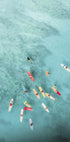 Osvěžující letecký plakát zobrazující surfaře plovoucí na tyrkysové vodě čekající na další vlnu. Tento pobřežní obrázek přináší svobodu, slunce a letní atmosféru do moderních domácností – ideální pro milovníky pláže.