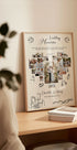 Romantická a minimalistická svatební koláž, která shromažďuje vaše nejkrásnější okamžiky v čistém, galerijním uspořádání. Jemné neutrální pozadí, elegantní typografie a ručně kreslené svatební ikony dodávají nadčasový vzhled. Personalizované se jmény, datem a krátkým textem - ideální jako svatební dar, překvapení k výročí nebo láskyplná vzpomínka do domácnosti.