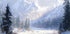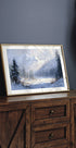 Zasněná, zasněžená krajina se rozvíjí jemnými tahy štětcem: tiché borovice, bílá pole a obloha v chladných modrých tónech, kde tančí lehké sněhové vločky. Dotek zlatého soumrakového světla vytváří hloubku a teplo. Motiv dýchá zimním klidem, severskou poezií a jemnou vánoční atmosférou - ideální do útulných pokojů.