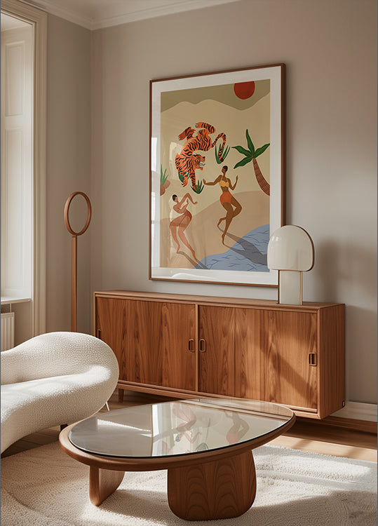 Dancing Tiger od Arty Guava - Papír prémiové kvality s hladkým matným povrchem a elegantním dojmem. Matný povrch snižuje odlesky a dodává rafinovaný, nadčasový vzhled. Pevný a odolný pro dlouhodobé používání, ideální pro profesionální prostředí i dekorativní displeje.